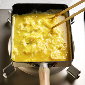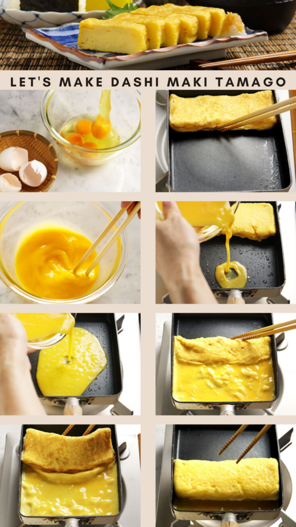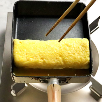 • You can fix the shape of your dashi maki tamago using a bamboo mat if you’re not happy with the result of your rolled egg.