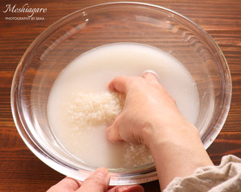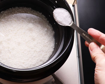 I usually sprinkle some sake/ rice wine once the rice is cooked to add a subtle flavor. If you would like to add sake like me, “don’t use sake that contains salt”. It makes your rice too salty, also its flavor is weaker than 清酒 (Seishu). Please check the label of your cooking sake or taste it. Many cooking sake/ rice wines contain salt but I don’t use salty sake when I cook.