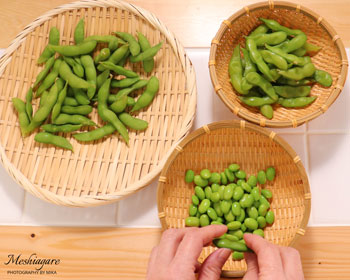 Either type of edamame can be used for this rice dish whichever is available in your country. Also one of the good things about this dish is all the ingredients can be preserved for a while.