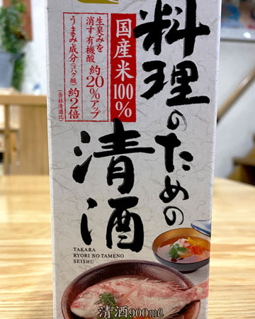 This is the cooking sake I used this time. It’s written “清酒 (Seishu) for cooking”. 清 means “pure” and 酒 means “sake”. The two kanji “清酒” is the mark of non-salt sake. However, if your sake is written “清酒風”, it means “Seishu style sake”, not real Shishu. Be careful, 風 means “style” in this case.