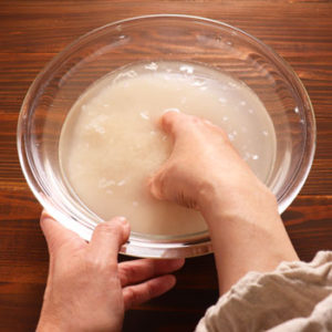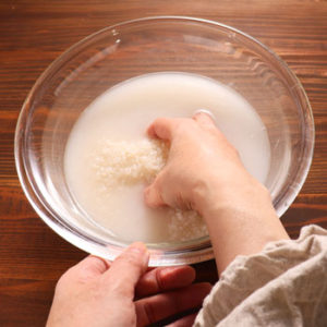 When I was a child, I learned washing rice strongly like polishing to remove the remaining miller’s bran.
