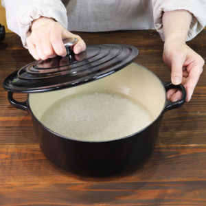 Today I’m going to use my “Le Creuset” because it’s more commonly used in the world than the Japanese style earthen pots.