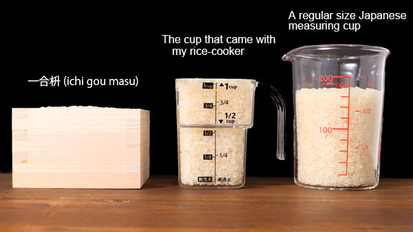 In Japan, a 200ml cup is used as 1 cup. However, when you measure rice and sake (Japanese rice wine), 1 cup means 180ml. If you have a Japanese rice cooker, It probably came with the 180ml cup.