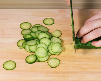 • Cut the cucumber into thin slices.