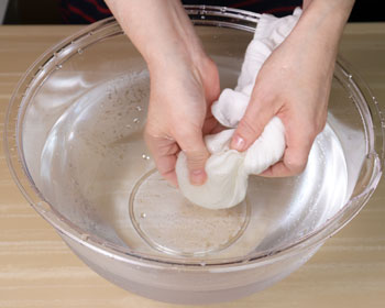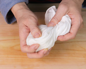Wrap the onions with the cloth and massage them.