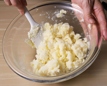 Mash the potatoes quickly. You don’t need to make them completely smooth.