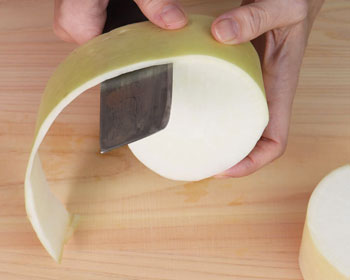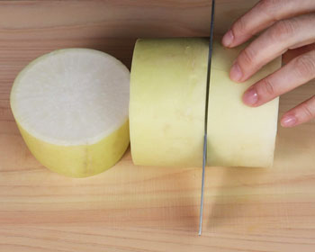 - Cut the daikon radish into 5 cm (1.9in) slices.