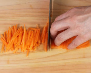 Although the color of the carrot isn’t exactly red, the julienned carrot and daikon radish look like kouhak mizuhiki. If you use a carrot like this. It should look more like mizuhiki.