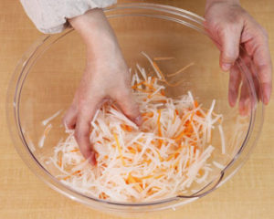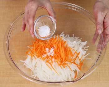 “I like the flavor in three days!” - To ensure a good color combination, make sure the amount of carrots doesn’t exceed 10% of the amount of the daikon radish.