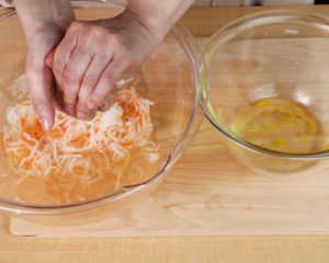 - Gently squeeze out some of the excess moisture from the vegetables, but not too much, you don't want to make them dry.
