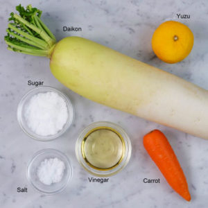 - Yellow yuzu is available in Japan during the winter. I also make namasu without yuzu in the other seasons. It’s also good! You can add konbu seaweed to namasu too.