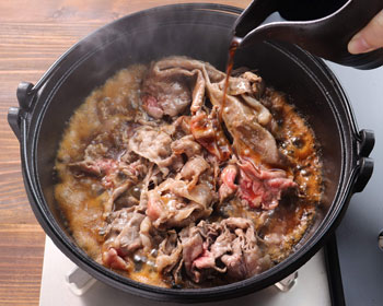 - Pour the warishita sauce into the pan.