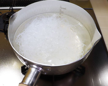 - Blanch the shirataki and drain.