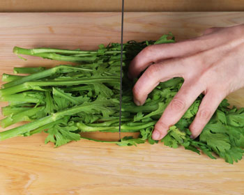 - Cut shungiku into the proper size for ease of eating.