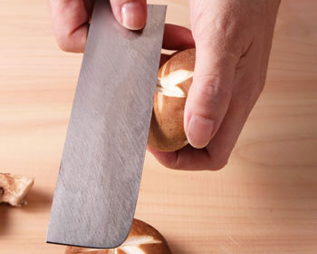 - Cut off the stems of the shiitake.
