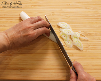 I chose silken tofu for this miso soup because I like to enjoy the smooth and soft texture. I usually cut silken tofu on my hand because it easily collapses on a cutting board.